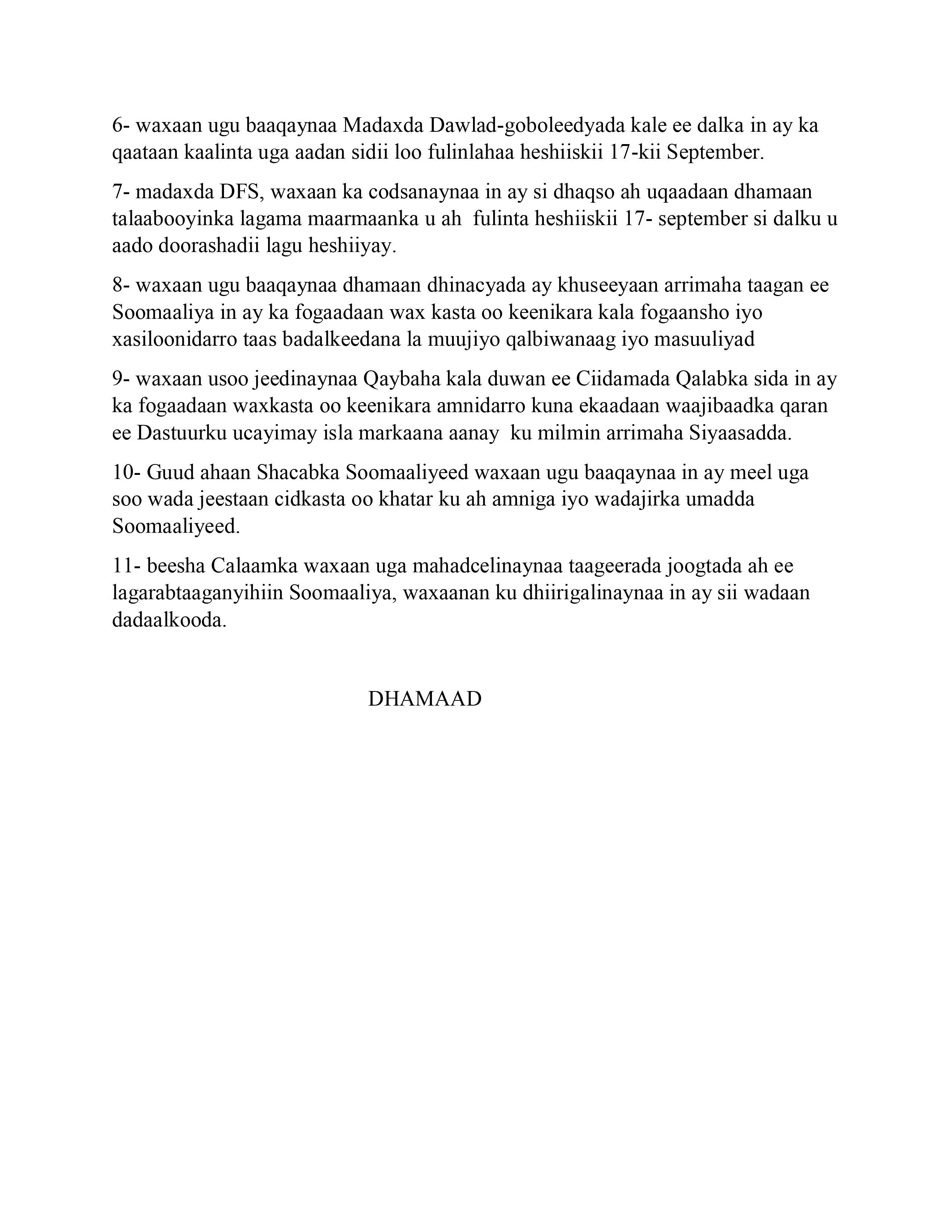 War qoraal ah oo kasoo baxay labada dowlad goboleedyo ayaa lagu sheegay in ay ku baaqayaan qabashadda doorashooyin iyo dib-u-bilaabida wadahadalo ku saleysan heshiiska 17-kii September.